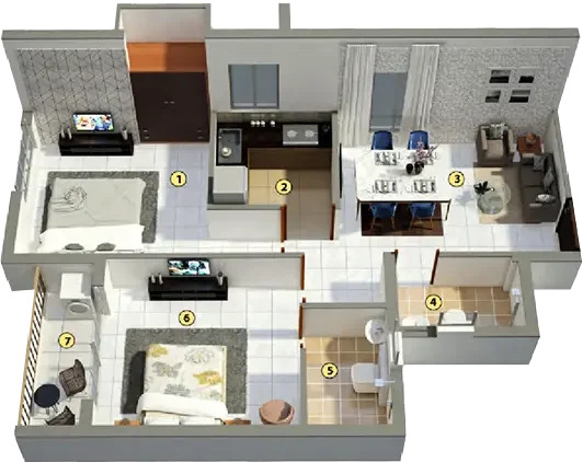 5. Apartments feature vitrified tile flooring, putty-finished walls, and aluminum windows for natural ventilation & light.