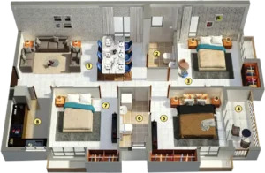 6. Equipped with branded locks, modular switches, and split air-conditioning in bedrooms for enhanced comfort.