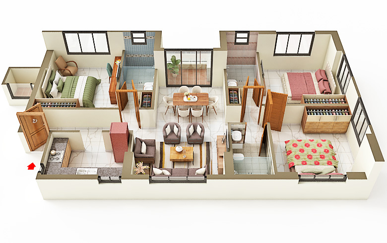 2. Residents will enjoy top-notch amenities, including a refreshing swimming pool, a convenient creche/day care, and a cosy library. The renowned Belle Vue Hospital is a key landmark nearby, ensuring excellent healthcare services. We have Double height entrance lobby, sky garden with each unit and triple height Podium Event Plaza.
